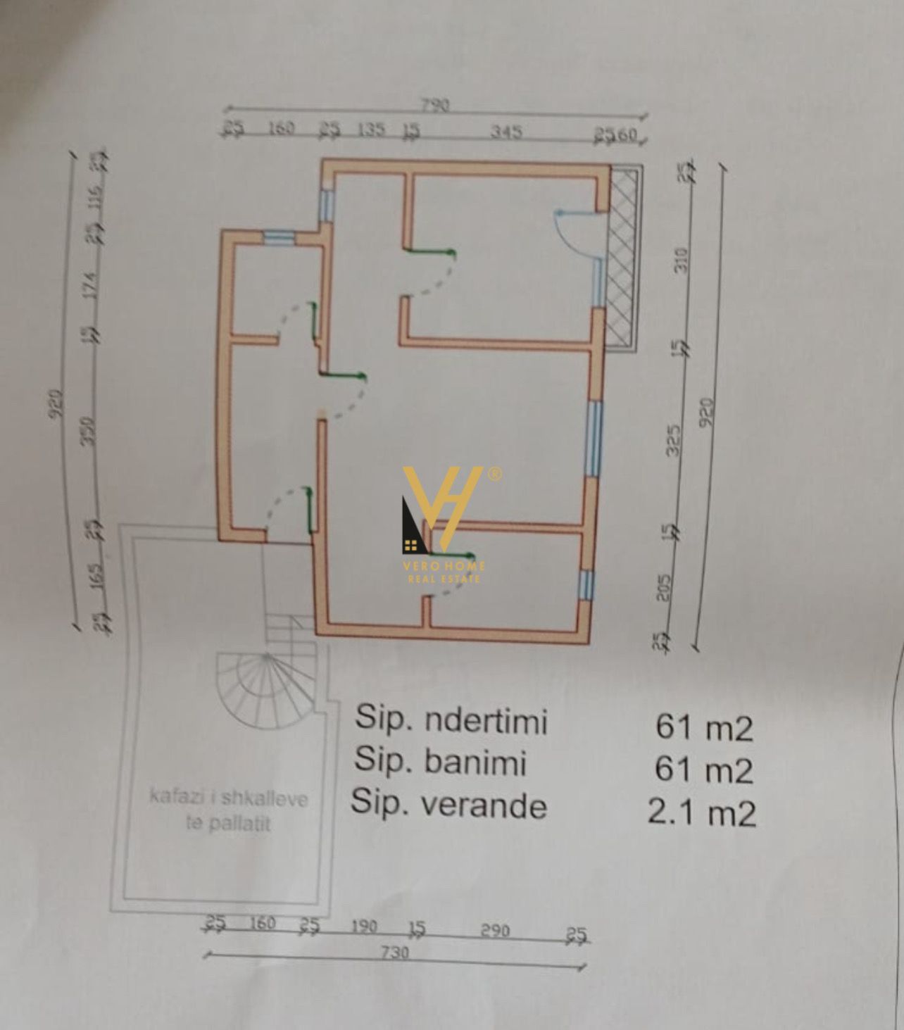 Sipërfaqe banimi: 61 m²